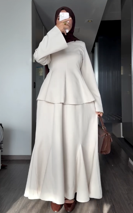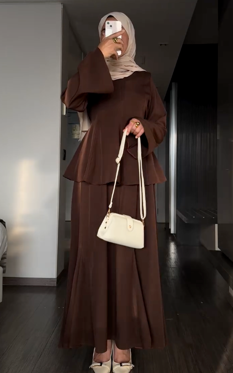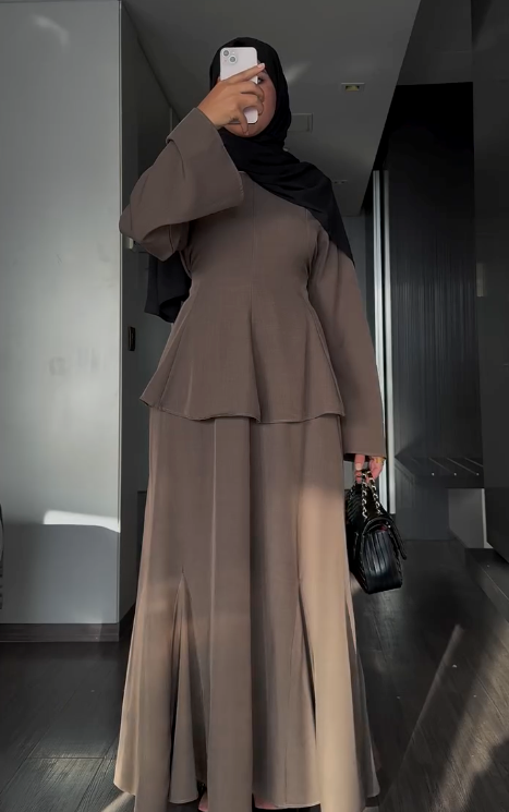 L’Ensemble Iconique KISAA combine une robe longue fluide et une cape détachable pour une modestie parfaite et un style raffiné. Le tissu de haute qualité est doux au contact, résistant aux plis et assure une opacité totale tout au long de la journée.